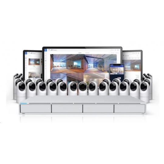 Popis produktu Do UNVR můžete nahrát až 30 dnů videa s rozlišením 4K až 15 kamer nebo s rozlišením Full HD až 50 kamer (4x 8TB disk, RAID 5). 4 pozice pro disky, RAID1 a RAID5 UniFi NVR je enterprise zařízení, na kterém je předinstalovaný software UniFi Protect a je vybaveno 4 šachtami, do kterých lze umístit jak 2,5'' tak 3,5" disky. Disky jsou přístupné z předního panelu, takže jejich montáž a výměna jsou opravdu jednoduché úkony. Zařízení je možné do sítě připojit prostřednictvím SFP+ portu nebo 1Gbit ethernetu a namontovat lze do běžného 19'' racku, kde zabere výšku 1U. Přistupujte odkudkoliv K NVR lze přistupovat ze stolního počítače, notebooku, ale také tabletu nebo mobilního telefonu. K dispozici jsou mobilní aplikace pro iOS i Android. Obsah balení • Zařízení • Napájecí kabel • Úchyty do 19" racku • Racková sada Technické parametry Konektory a rozhraní Rychlost LAN:(1) 10/100/1000Mbps Optické rozhraní:(1) 1/10Gbps Napájení Typ napájení:Ze sítě (230V), UniFi SmartPower RPS Redundantní napájení:Ano Max. spotřeba energie [W]:100 Fyzické charakteristiky Provedení:Rackmount Počet "U" pozic:1 Provozní teplota [°C]:-5 až 40 Hmotnost [g]:5200 Šířka [mm]:442 Výška [mm]:44 Hloubka [mm]:325 Hardware Počet podporovaných IP kamer:50 Počet podporovaných HDD:4 Podporovaná kapacita HDD [TB]:16 Software Úroveň RAID:1 - mirroring, 5 - striping.