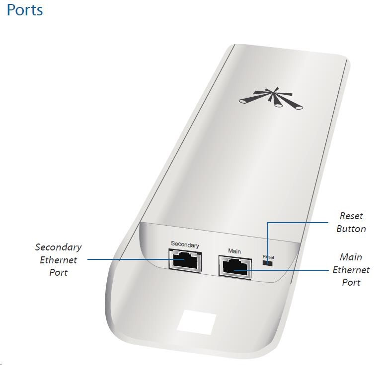 Nanostation M5 disponuje proti verzi "locoM5" dvěma ethernet.porty a výkonnější anténou se ziskem 16dBi. Můžeme tak k jednotce například připojit IP kameru. Díky možnosti distribuce PoE napájení i na tento port není nutné instalovat dva samostatné PoE adaptéry. PoE na druhém portu lze softwarově vypínat/zapínat, lze tak případně vzdáleně restartovat připojené zařízení. PoE adaptér disponuje "RESET" tlačítkem pro uvedení jednotky do továrního nastavení případně TFTP režimu pro obnovu poškozeného firmware.