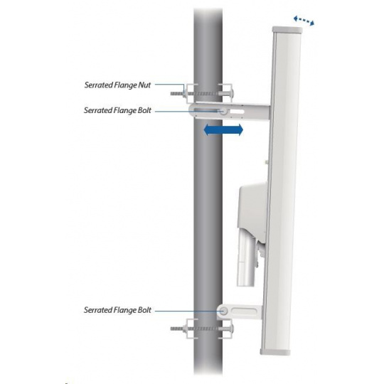 Dvoupolarizační sektorová 16dBi anténa vhodná pro jednotku Rocket M2 (2x2 MIMO). Vyzařovací úhel 90°. Využívá horizontální i vertikální polarizaci, čímž nahrazuje dvě samostatné antény a lze tak jednoduše vytvořit přístupový bod s vysokou propustností.