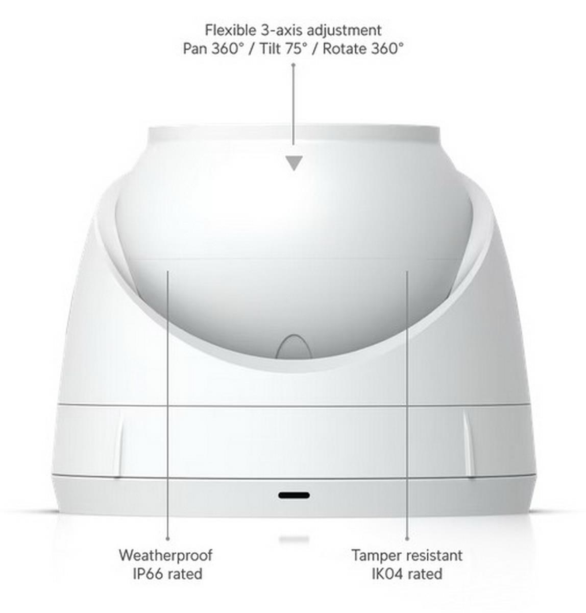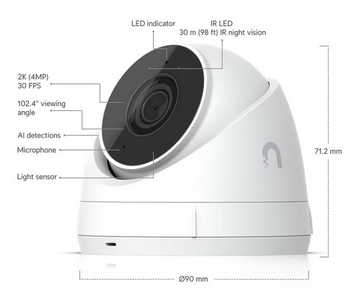 Popis produktu UniFi Protect UNVR-Instant-Kit je prodáván jako kit záznamového zařízení včetně 1TB 3,5'' HDD a 4 ks kamer UVC G5 Turret Ultra. K NVR je možné připojit až 15 kamer v HD rozlišení, 8 kamer s 2K rozlišením nebo 6 kamer ve 4K. NVR je vybaveno gigabitovým uplink portem a 6 gigabitovými porty s podporou PoE napájení 802.3af, které slouží pro připojení kamer. Napájení NVR je ze sítě 230V AC a jeho maximální spotřeba bez připojeného příslušenství a kamer je 9 W. Kamery UVC G5 Turret Ultra s rozlišením 4MP (2688 x 1512) jsou vybaveny fixním objektivem, který má pozorovací úhel 102,4° horizontálně a 54,9° vertikálně. Kamery disponují mikrofonem a 10/100Mbps ethernetovým portem, který slouží i k napájení kamery přes POE 802.3af nebo pasivní POE se vstupním napětím 37 - 57 V DC. Pro noční režim kamera využívá IR přísvit s dosahem 30 m. Maximální spotřeba činí pouze 4 W. Klíčové vlastnosti • UNVR-Instant + 1TB 3.5'' HDD + 4 UVC G5 Turret Ultra • Vše v jednom pro snadnou instalaci • Uložení záznamu na 3.5" pevný disk 1 TB (součást balení) • Možnost montáže kamer na zeď, strop (držák součástí balení) Obsah balení • NVR • (4) kamera UVC G5 Turret Ultra • (1) 3,5" HDD s kapacitou 1 TB • Montážní podložka • Montážní příslušenství Technické parametry Kamera Typ objektivu:Fixní Dosah přísvitu [m]:30 Obrazový senzor ["]:1/2.4 Obraz Rozlišení:4MP Max. rozlišení [pixely]:2688 x 1512 Max. rozlišení kamer pro záznam:8MP Konektory a rozhraní Audio:Mikrofon Rychlost LAN:(7) 10/100/1000Mbps HDMI rozhraní:Ano Napájení Napájení přes PoE:802.3af Typ napájení:Ze sítě (230V) Podporované PoE-Out standardy:802.3af Počet PoE Out portů:6 PoE budget [W]:40 Max. spotřeba energie [W]:4 Fyzické charakteristiky Stupeň krytí:IP66 Provedení:Desktop Použití:Venkovní Tlačítka:Reset Provozní teplota [°C]:0 až 40 Hmotnost [g]:1040 Šířka [mm]:47 Výška [mm]:47 Hloubka [mm]:220 Hardware Počet podporovaných IP kamer:15 Počet podporovaných HDD:1 Obecné Kamerová řada:UniFi Protect.