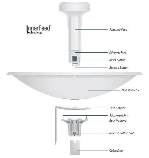 Popis produktu PowerBeam vychází z dřívější velmi úspěšné řady produktů NanoBridge. Nově obsahuje výkonější hardware a chytřejší konstrukci. Konstrukce byla maximálně zjednodušena a instalace v terénu je nyní rychlejší a pohodlnější, pro zajímavost bych zmínil tlačítko pro uvolnění zářiče což byl problém u starší generace. Uvnitř PowerBeamu se nachází výkonný MIPS procesor Atheros 74KC s frekvencí 560MHz, kterému sekunduje 64MB operační paměti typu DDR2 a 8MB Flash paměť. Síťový port podporuje 10/100 Ethernet a lze po něm jednotku napájet pasivním PoE 24V/0,5A (aktivní PoE dle 802.3af není podporováno). Teoretická maximální propustnost jednotky je 300Mbit (MCS15, 802.11n, 2x2MIMO, při šířce kanálu 40MHz). InnerFeed technologie InnerFeed™ technologie integruje rádiovou část do zářiče od antény čímž odpadá potenciální ztráta na RF kabelu. Ekcelentní směrovost Tvar a velikost PowerBeamu nabízí nejvyšší možný zisk antény. Navíc díky ekcelentní směrovosti Vám bude PoweBeam skvěle pracovat i ve více zarušeném prostředí. Největší výhodou jakéhokoliv airMAX zařízení je vedle vysoké přenosové rychlosti díky standardu 802.11n využití časového multiplexu TDMA. Protokol TDMA airMAX umožňuje vynikající škálovatelnost a vysokou propustnost při zachování nízkých latencí v PtMP sítích. Obsah balení • Zařízení • Parabola • PoE napájecí zdroj • Napájecí kabel • Plastová část pro uchycení zářiče • Držák Technické parametry Bezdrátové vlastnosti Bezdrátové frekvence:5 GHz WiFi standardy:airMAX, 802.11a, 802.11n Přenosová rychlost - 5GHz [Mb/s]:300 Vysílací výkon 5GHz [dBm]:26 Šifrování:WPA2 AES 5GHz MIMO:2 x 2 Typ antény:Vestavěná Počet vestavěných antén:2 Zisk antény [dBi]:22 Konektory a rozhraní Rychlost LAN:(1) 10/100Mbps Napájení Napájení přes PoE:24V DC Typy PoE:PoE-In (pouze) Max. spotřeba energie [W]:6 Fyzické charakteristiky Použití:Venkovní Tlačítka:Reset Provozní teplota [°C]:-40 až 70 Hmotnost [g]:1203 Šířka [mm]:325 Výška [mm]:325 Hloubka [mm]:256 Hardware CPU:MIPS 74Kc Frekvence CPU [MHz]:560 RAM [MB]:64 Software Operační mód:Klient, Repeater, AP Router, Access Point, Klient Router (wisp) Podpora IPv6:Transparentní (režim bridge) Výchozí IP adresa:192.168.1.20 Výchozí jméno a heslo:ubnt / ubnt.