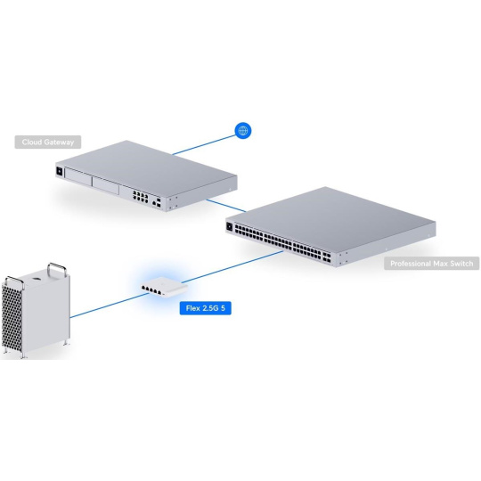 Popis produktu Switch Flex Mini 2.5G od Ubiquiti je kompaktní přepínač určený pro rozšíření sítě v domácích i kancelářských prostředích. Nabízí pět 2.5 Gigabitových portů, které umožňují snadnou integraci zařízení s vyššími přenosovými rychlostmi, jako jsou moderní přístupové body, servery nebo NAS úložiště. Switch podporuje správu prostřednictvím platformy UniFi Controller, což usnadňuje jeho konfiguraci a dohled nad sítí. Jednou z jeho klíčových funkcí je podpora napájení přes ethernet, což znamená, že zařízení lze napájet přímo přes síťový kabel pomocí PoE vstupu na prvním portu (802.3af/at), případně pak pomocí přiloženého USB-C adaptéru. Svým minimalistickým designem je ideální pro umístění na pracovním stole nebo třeba montáž na stěnu. Je plně kompatibilní se systémy UniFi a umožňuje snadné škálování podle potřeby. Obsah balení • Zařízení • Napájecí adaptér USB-C (5V / 1A) Technické parametry Konektory a rozhraní Rychlost LAN:(4) 10/100/1000/2500Mbps Sériový port:RJ45 Napájení Typ napájení:PoE, USB-C Typy PoE:PoE-In (pouze) Max. spotřeba energie [W]:6,4 Napájení přes konektor/svorkovnici:5V / 1A Fyzické charakteristiky Provedení:Desktop Šasi:Plastové Tlačítka:Reset Provozní teplota [°C]:-20 až 45 Šířka [mm]:90 Výška [mm]:117 Hloubka [mm]:21 Software Management:UniFi Network.