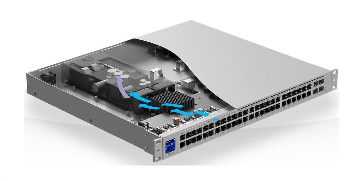 Druhá generace UniFi switchů přináší řadu změn a vylepšení, switche byly přebudovány od základu. Oproti první generaci došlo k výraznému vylepšení toku vzduchu, který slouží k chlazení, a tak v porovnání je až 4x tišší* než první generace.