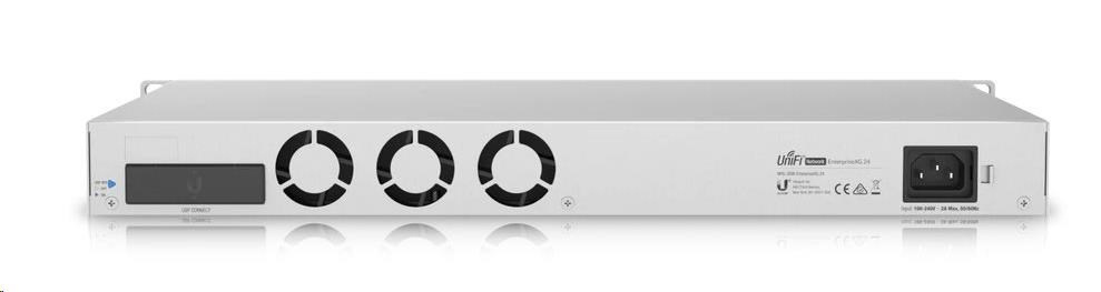 USW-EnterpriseXG-24 je plně managovatelný Gigabitový L3 switch s 24× 100M/1G/2.5G/5G/10G LAN porty a dvěma porty SFP28 s přenosovou rychlostí 1/10/25 Gbps. Switch má kromě standardní výbavy také 1,3" dotykovým displej pro poskytování informací o systému, teplotě, statistice portů a mnoho dalšího.