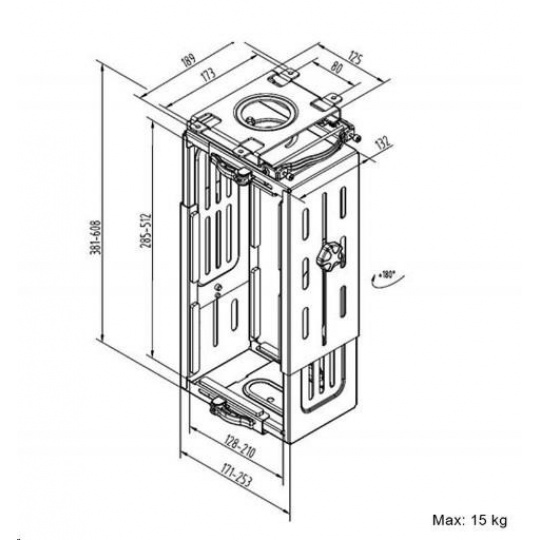 Univerzální držák PC na stůl Mounts CH101B Profesionální držák na PC, uchycení na stůl, nastavení na požadované rozměry, nosnost 15kg Držák na PC špičkové kvality a bezpečnosti. Velmi pevné uchycení vašeho PC na stůl. Nastavení na rozměry vašeho PC. Materiál ocel, barevné provedení černé. Na PC s hmotností až 15kg. Snadná a rychlá instalace. Záruka 5 let. Držák na PC pod stůl, nosnost 15kg, nastavení na rozměry PC, profesionální, TOP kvalita - Mounts CH101B Technické údaje: nosnost 15kg univerzální, vhodný na většinu dostupných PC šířka PC od 128mm do 210mm výška PC od 285mm do 512mm spolehlivézajištění držáku v požadovaných rozměrech délka PC není podstatná otáčení do stran +/- 360° profesionální výrobek špičkové kvality bezpečný, pevný, spolehlivý uchycení na vodorovnou plochu (pod stůl, pod polici atd.) materiál ocel barevné provedení černé nebo bílé záruka 5 let.