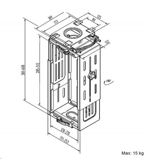 Univerzální držák PC na stůl Mounts CH101B Profesionální držák na PC, uchycení na stůl, nastavení na požadované rozměry, nosnost 15kg Držák na PC špičkové kvality a bezpečnosti. Velmi pevné uchycení vašeho PC na stůl. Nastavení na rozměry vašeho PC. Materiál ocel, barevné provedení černé. Na PC s hmotností až 15kg. Snadná a rychlá instalace. Záruka 5 let. Držák na PC pod stůl, nosnost 15kg, nastavení na rozměry PC, profesionální, TOP kvalita - Mounts CH101B Technické údaje: nosnost 15kg univerzální, vhodný na většinu dostupných PC šířka PC od 128mm do 210mm výška PC od 285mm do 512mm spolehlivézajištění držáku v požadovaných rozměrech délka PC není podstatná otáčení do stran +/- 360° profesionální výrobek špičkové kvality bezpečný, pevný, spolehlivý uchycení na vodorovnou plochu (pod stůl, pod polici atd.) materiál ocel barevné provedení černé nebo bílé záruka 5 let.