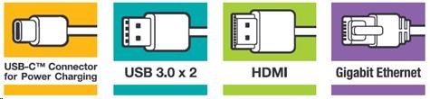 | Interface | USB-C (USB 3.1 GEN 1), 2 x USB 3.0, HDMI, Gigabit Ethernet |