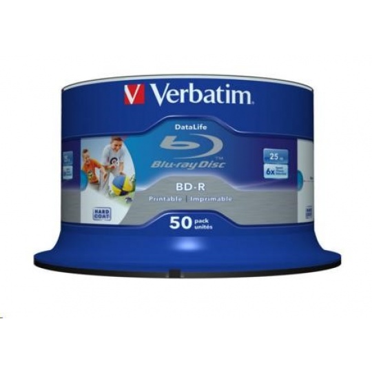 VERBATIM BD-R SL Datalife HTL (50-pack)Blu-Ray/Spindle/6x/25GB Wide Printable