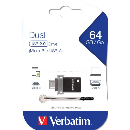 VERBATIM Dual USB Drive 64 GB - OTG/USB 2.0 for Smarphones & Tablets
