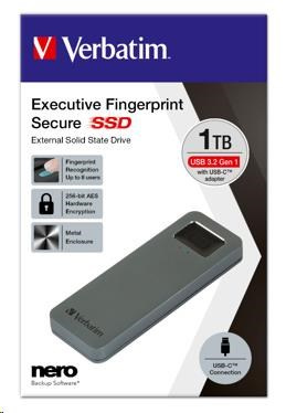 VERBATIM externí SSD 1TB, Executive Fingerprint Secure SSD, USB 3.2 Gen 1/USB-C, (W:356 MB/s, R:344 MB/s), šedá
