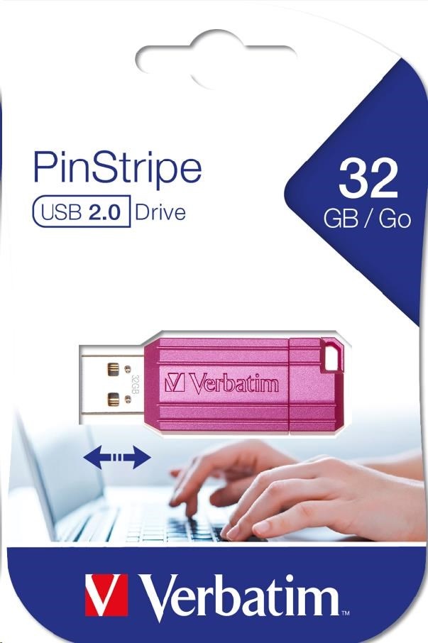 VERBATIM Flash Disk 32GB Hi-Speed Store 'n' Go, Pinstripe, USB 2.0, Hot růžová