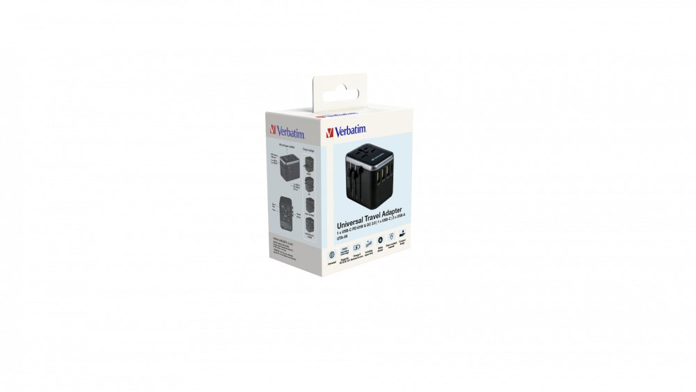 | Pack Contents | Verbatim UTA-04 Universal Travel Adapter with 1 x USB-C PD 61W & QC 3.0 / 1 x USB-C / 3 x USB-A Quick Start Guide |