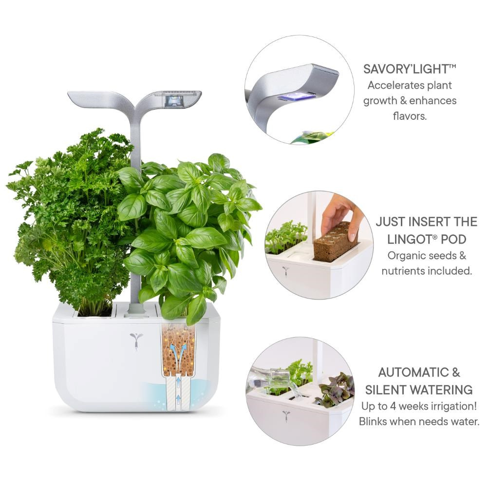 S Exky Classic nebylo domácí pěstování nikdy snazší. Vložte sazenici Lingot, naplňte nádrž na vodu a zahrada se postará o zbytek. Její intuitivní design znamená, že k tomu, abyste si užili čerstvé, domácí produkty po celý rok, nepotřebujete žádné zahradnické dovednosti.