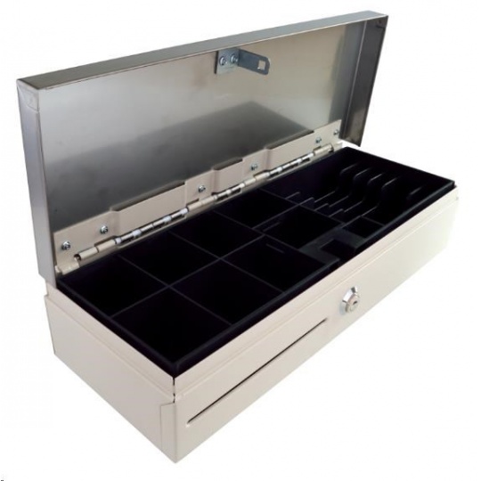 Virtuos pokladní zásuvka Flip-top FT-460C3 - s kabelem, se zamykacím krytem, NEREZ víko, bílá