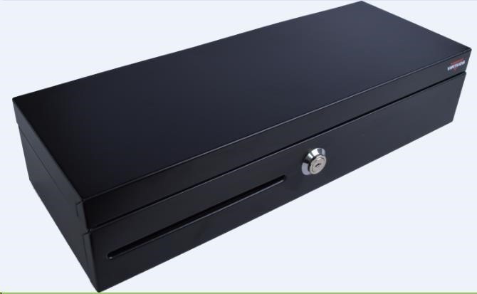Virtuos pokladní zásuvka FT-460C Flip top, s víkem, 9-24V, černá - s kabelem