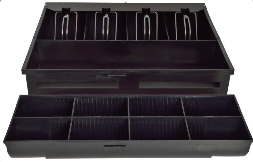 | Přihrádky | 4 x pro bankovky (nastavitelné) 8 x pro mince (nastavitelné) |