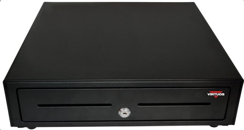 Virtuos pokladní zásuvka S-410C - s kabelem, pořadač 4/8, 9-24V, černá