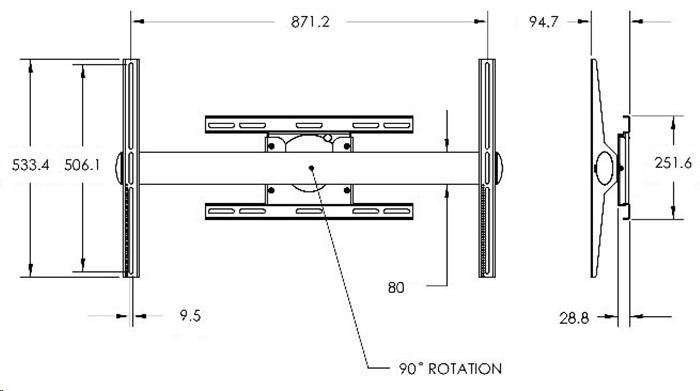 Univerzální držák pro displeje do 72 kg- souvislá rotace o 90° - možno nastavit směr - po nebo proti směru hodinových ručiček