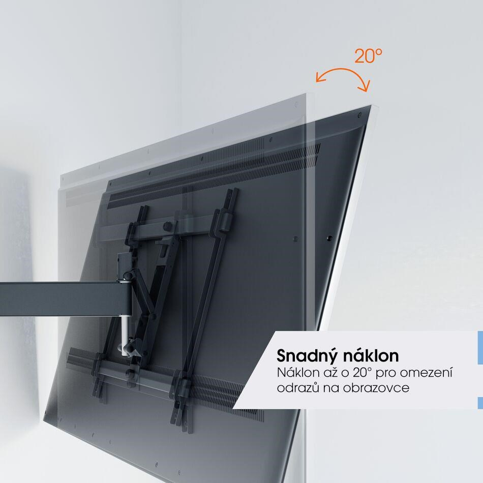 - Snadné naklápění - vyhněte se odrazům a skloňte TV až do úhlu 20°, zajištění a uvolnění pomocí TiltAnchor™