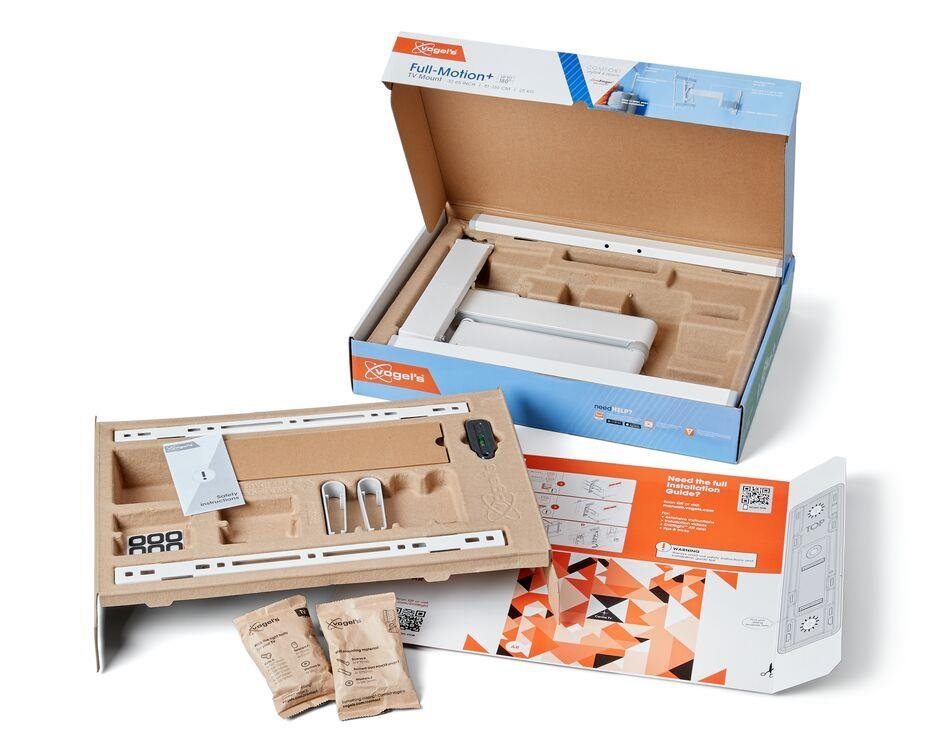 Společnost Vogel's vám maximálně usnadní instalaci držáku. Balení obsahuje vrtací šablonu, šrouby, hmoždinky Fischer® DuoPower, stahovací pásky na kabely a vodováhu. Pomocí naší bezplatné aplikace DrillRight™ AR App si snadno vyznačíte první vrtací otvor a pokyny k instalaci najdete ve stručném průvodci instalací. Nebo si prohlédněte podrobný návod či speciální instalační video online.