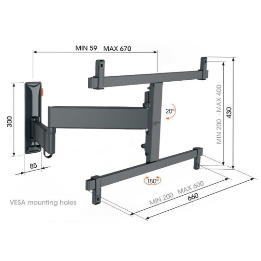 - Otočte televizor až o 180° díky 67 cm dlouhým ramenům