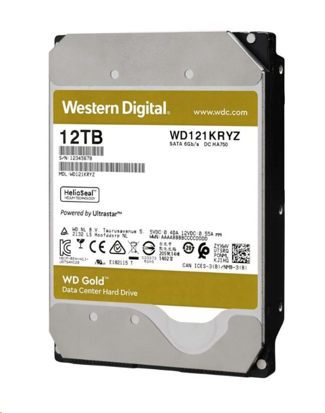 WD GOLD WD122KRYZ 12TB, SATA III 3.5", 512MB 7200RPM, 255MB/s, CMR, Enterprise
