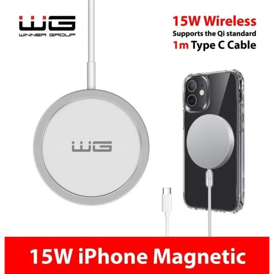 WG - Bezdrátová nabíječka FAST MAGNET 15W, kulatá, bílá