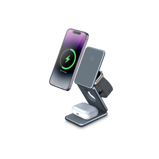 WG - Bezdrátová nabíječka WG39, 3v1, 15W+5W+3W, šedá