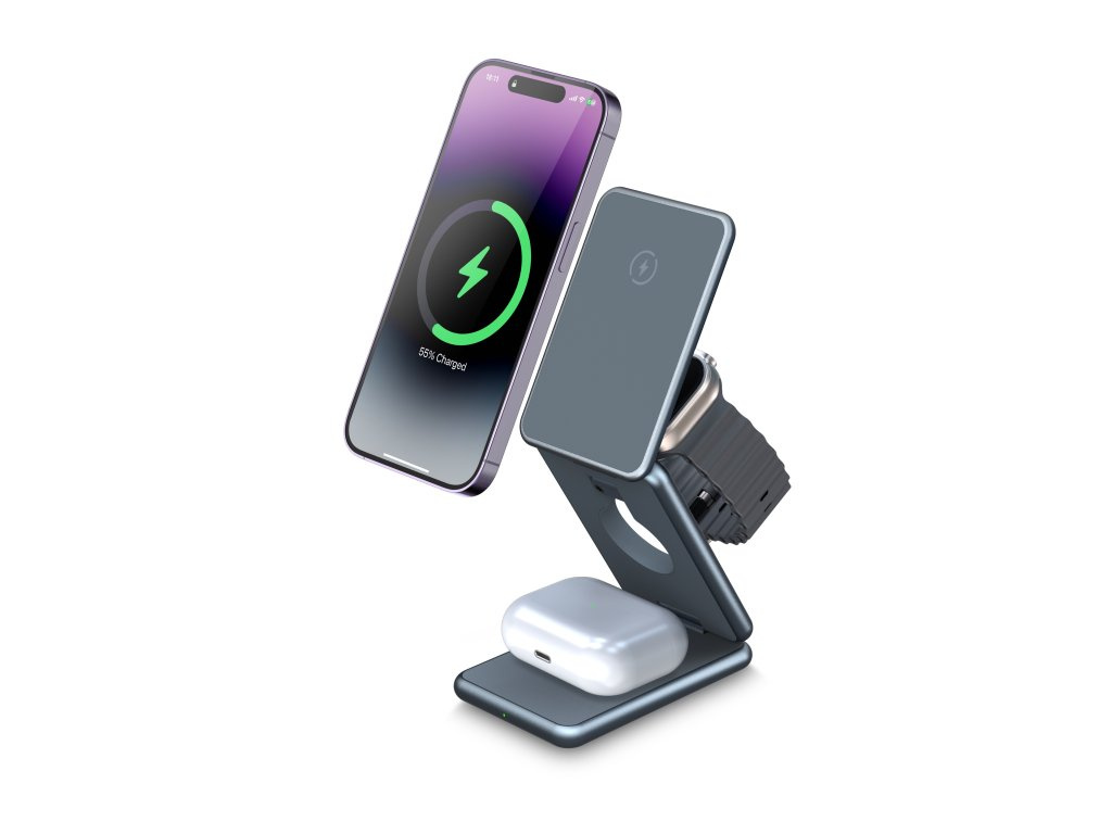 WG - Bezdrátová nabíječka WG39, 3v1, 15W+5W+3W, šedá