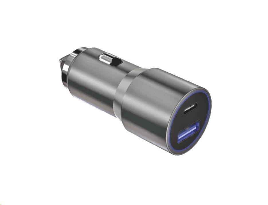 Prostřednictvím této nabíječky můžete rychle a bezpečně dobít svá zařízení přímo v autě. Konstrukce nabíječky navíc obsahuje malý tvrzený hrot, umožňující rozbití skla v autě v případě nouze.