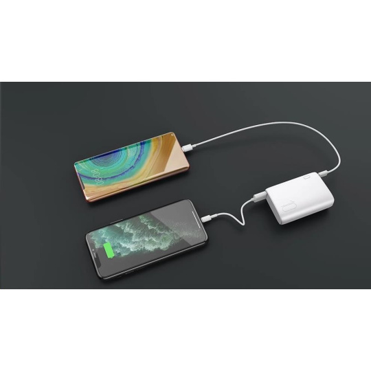 - Vysoká kapacita: 10000 mAh poskytuje dostatek energie pro několik nabití vašich zařízení.
