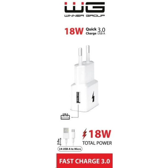WG - Síťová nabíječka 1x USB-A, Quick Charge 3.0, 5V-9V-12V + kabel USB-A na Micro USB, white