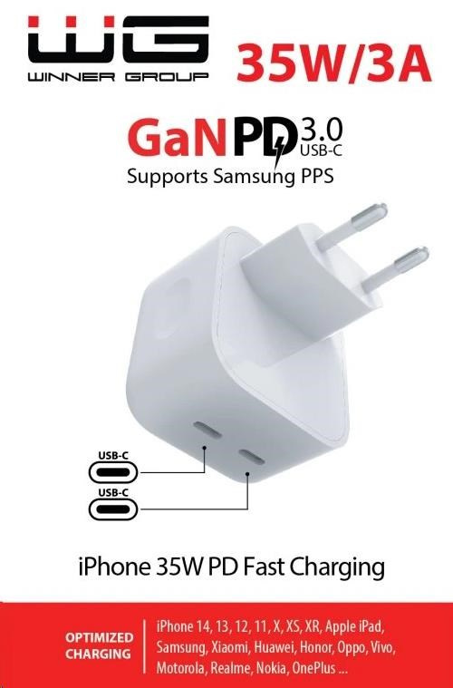 WG - Síťová nabíječka GaN 2x USB-C 35W, bílá