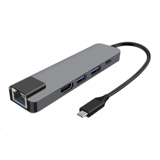 USB HUB je ideálním rozšířením pro zařízení obsahující pouze USB-C konektor. Díky adaptéru můžete připojit HDMI kabel, gigabitový ethernetový port, 2x USB 3.0 a také nabíjet zařízení pomoci technologie PD. Výhodou je, že všech pět portů můžete používat současně. Při cestování oceníte kompaktní rozměr adaptéru, který Vám nezabere téměř žádné místo.