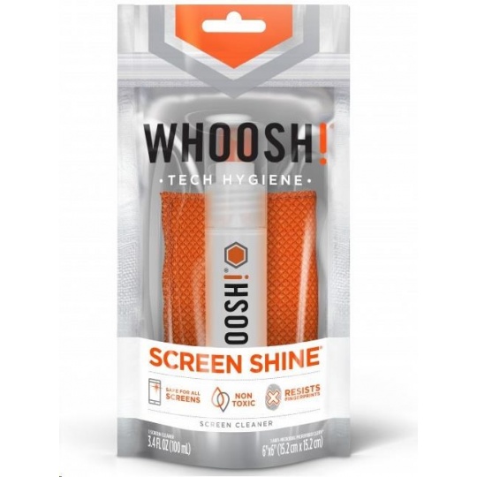 Mikrovláknová utěrka Whoosh! je tkaná z extra tenkého vlákna s antimikrobiální úpravou. Jemné smyčky W! tkaniny spolehlivě zachytí i mikroskopické nečistoty. V kombinaci s přípravky Screen Shine se Whoosh! postará o dokonalou hygienu vašeho mobilu, tabletu a dalších zařízení, kterých se denně dotýkáte. Podrobnější informace najdete zde.