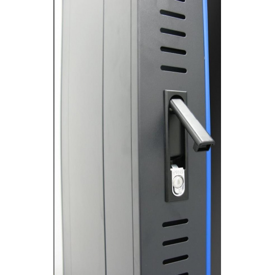 Rozvaděče jsou výborně řemeslně zpracovány. Vyrobeny jsou z válcované oceli, nosné části jsou z oceli tloušťky 2 mm, ostatní části z 1,5 mm oceli. Pevná konstrukce dovoluje statickou zátěž až 500 kg. Uzamykatelné přední a zadní dveře, rukou uzavíratelné a volitelně uzamykatelné boční panely. Dodává se s nožičkami, kolečky a montážní sadou. Je možné přidat podstavec. Kolečka i nožičky lze nainstalovat současně a zajistit tak stabilní instalaci, kterou je možné v případě potřeby snadno přesouvat. Provedení: dveře - bezpečnostní sklo, uzamykatelné zádní kryt - plný, uzamykatelný boční kryt - plný, možno vybavit zámkem