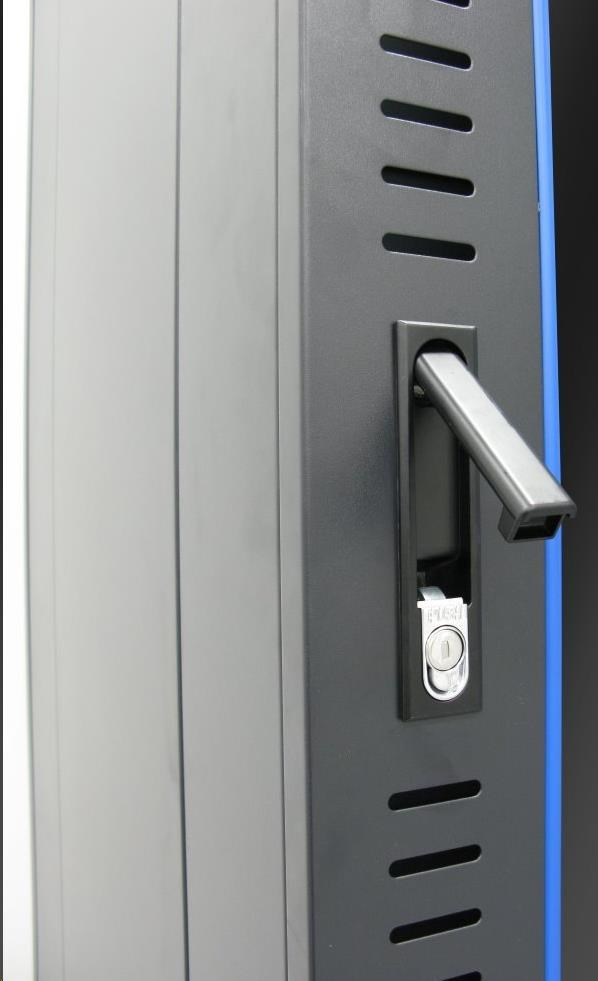 Rozvaděče jsou výborně řemeslně zpracovány. Vyrobeny jsou z válcované oceli, nosné části jsou z oceli tloušťky 2 mm, ostatní části z 1,5 mm oceli. Pevná konstrukce dovoluje statickou zátěž až 800 kg. Uzamykatelné přední a zadní dveře, rukou uzavíratelné a volitelně uzamykatelné boční panely. Dodává se s nožičkami, kolečky a montážní sadou. Je možné přidat podstavec. Kolečka i nožičky lze nainstalovat současně a zajistit tak stabilní instalaci, kterou je možné v případě potřeby snadno přesouvat. Provedení: dveře - bezpečnostní sklo, uzamykatelné zádní kryt - plný, uzamykatelný boční kryt - plný, možno vybavit zámkem