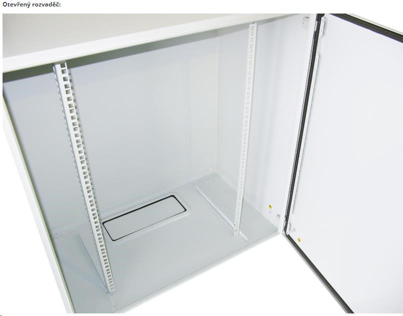 - v dolní části rozvaděče je umístěn průchod pro kabeláž o velikosti 303 x 113 mm s odnímatelným krytem