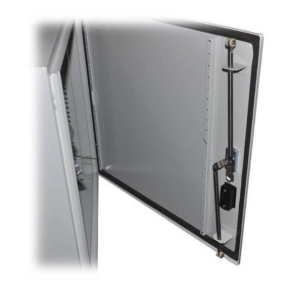 Venkovní nástěnný rozvaděč vyrobený z válcované oceli o tloušťce 1,5 mm.Třívrstvá povrchová úprava. Provedení: dveře - plné, otevíratelné o 110°, 3-bodový zámek, zaměnitelný směr otevírání, těsnění z pěnového polyuretanu zádní kryt - plný boční kryt - plný horní kryt - plný