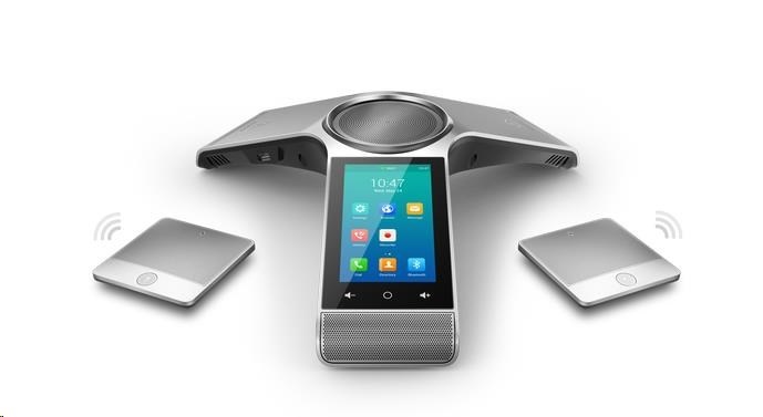 - Součástí balení jsou bezdrátové mikrofony Yealink CPW90 pro rozšíření pokrytí a mobilitu