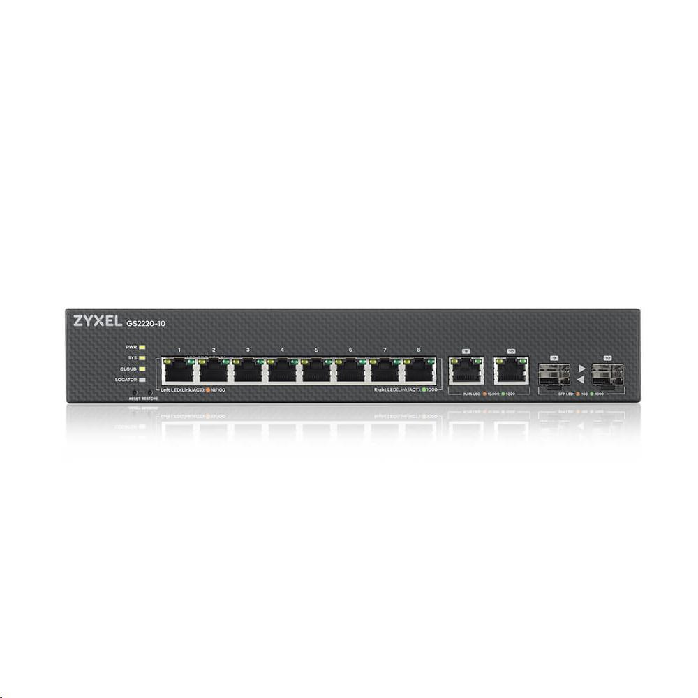 Zyxel GS2220-10 10-port L2 Managed Gigabit Switch, 8x gigabit RJ45, 2x gigabit RJ45/SFP